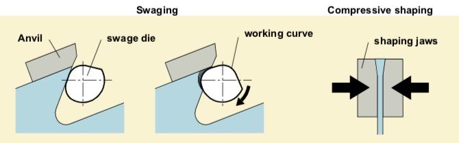 The swage has to be adapted to the various types of wood if higher performances are to be obtained. This is achieved via the diameter of the swaging die which serves to shape the swage.