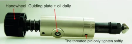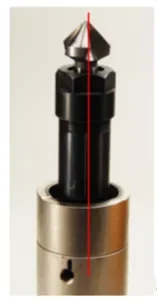 Move the clamping prism to the stop of the stand and fix the pin for this purpose. Then fix the countersink holder in the clamping prism from 20 to 40 mm. By turning the countersink chuck handwheel clockwise we will give the sharpening load.